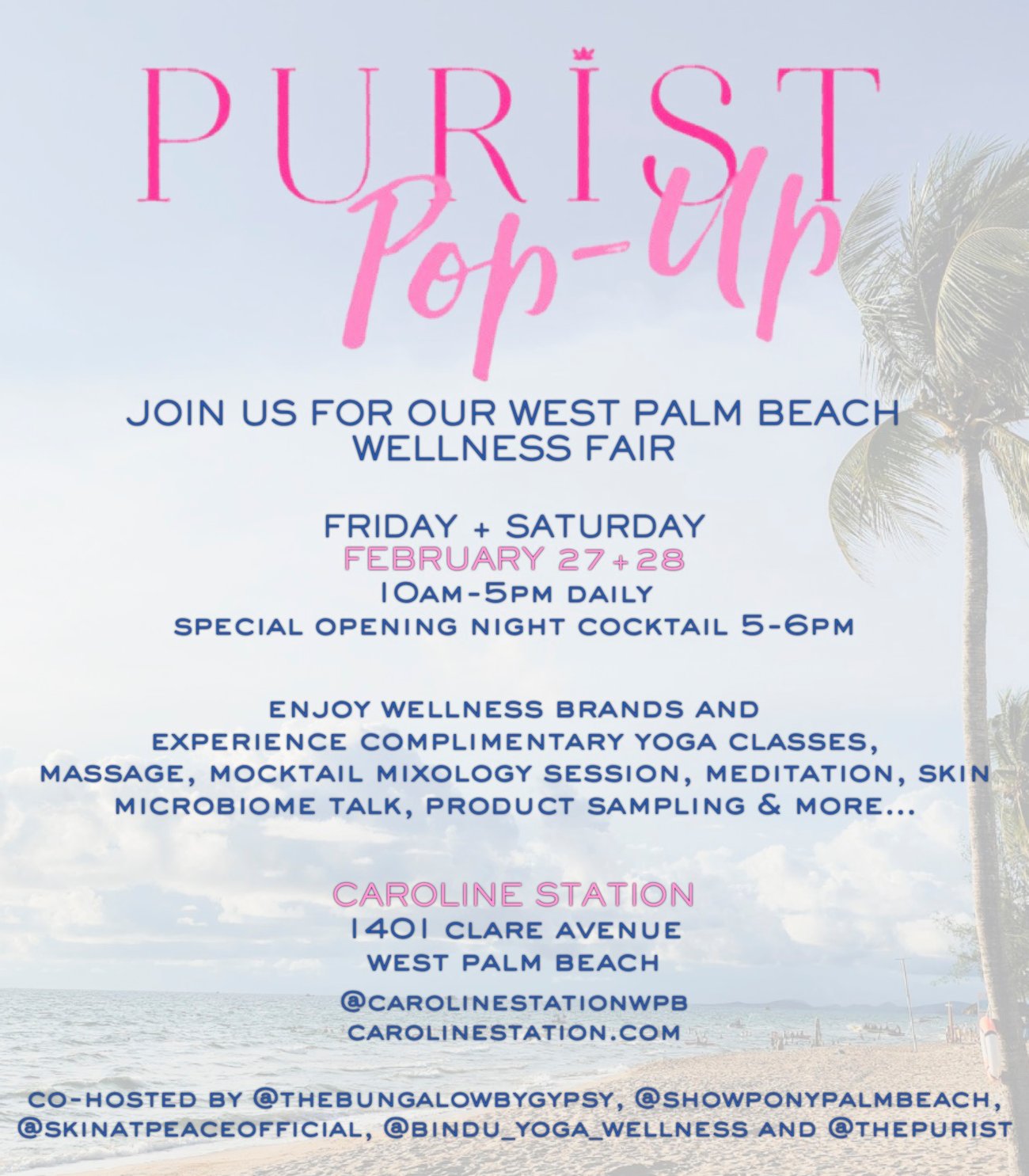 Join us on February 27+28 at Caroline Station (1401 Clare Ave.) for our Purist Wellness Fair in West Palm Beach! Sample holistic essentials, connect with community and explore the latest in clean living. View the schedule of events here.